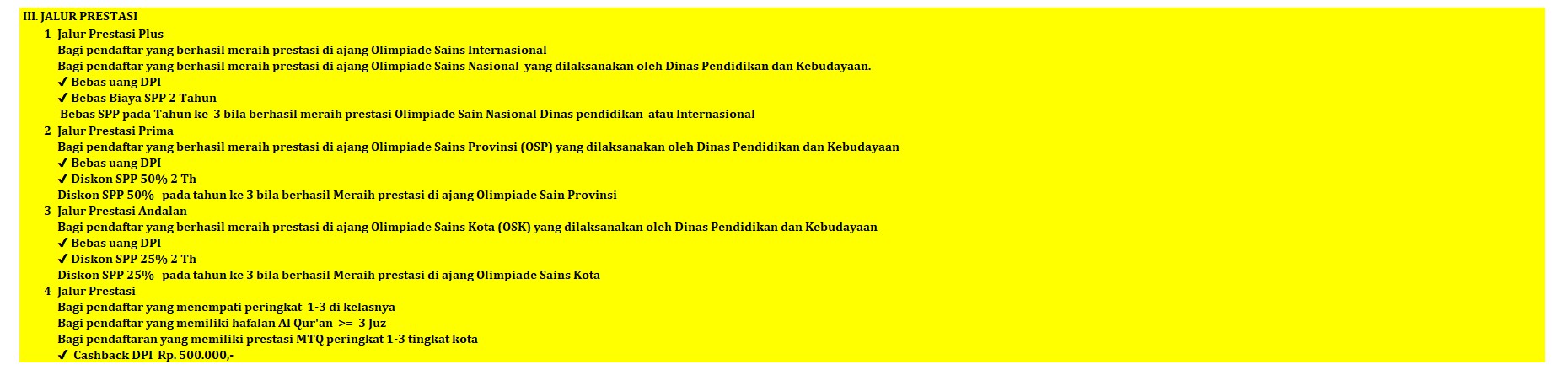 - Pendaftaran bisa ditutup sewaktu-waktu bila kuota jumlah siswa telah terpenuhi.