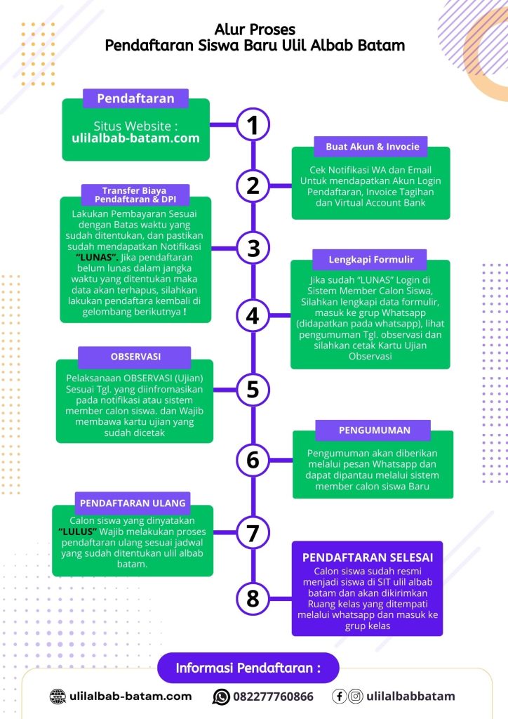 Jadwal Pelaksanaan Pendaftaran Peserta Didik Baru Ulil Albab Batam, Tahun Pelajaran 2026 – 2027, Sebagai Berikut :